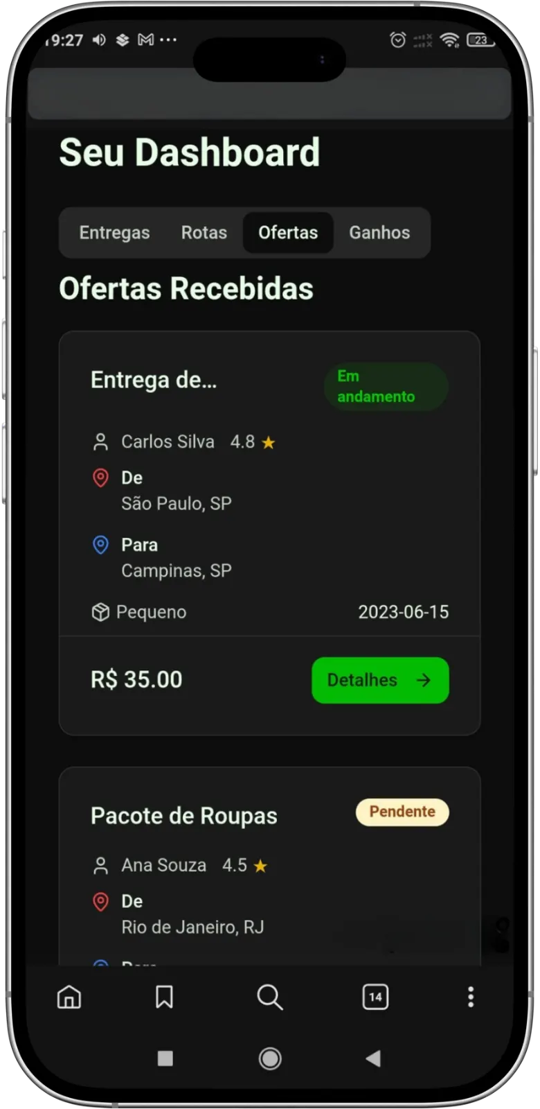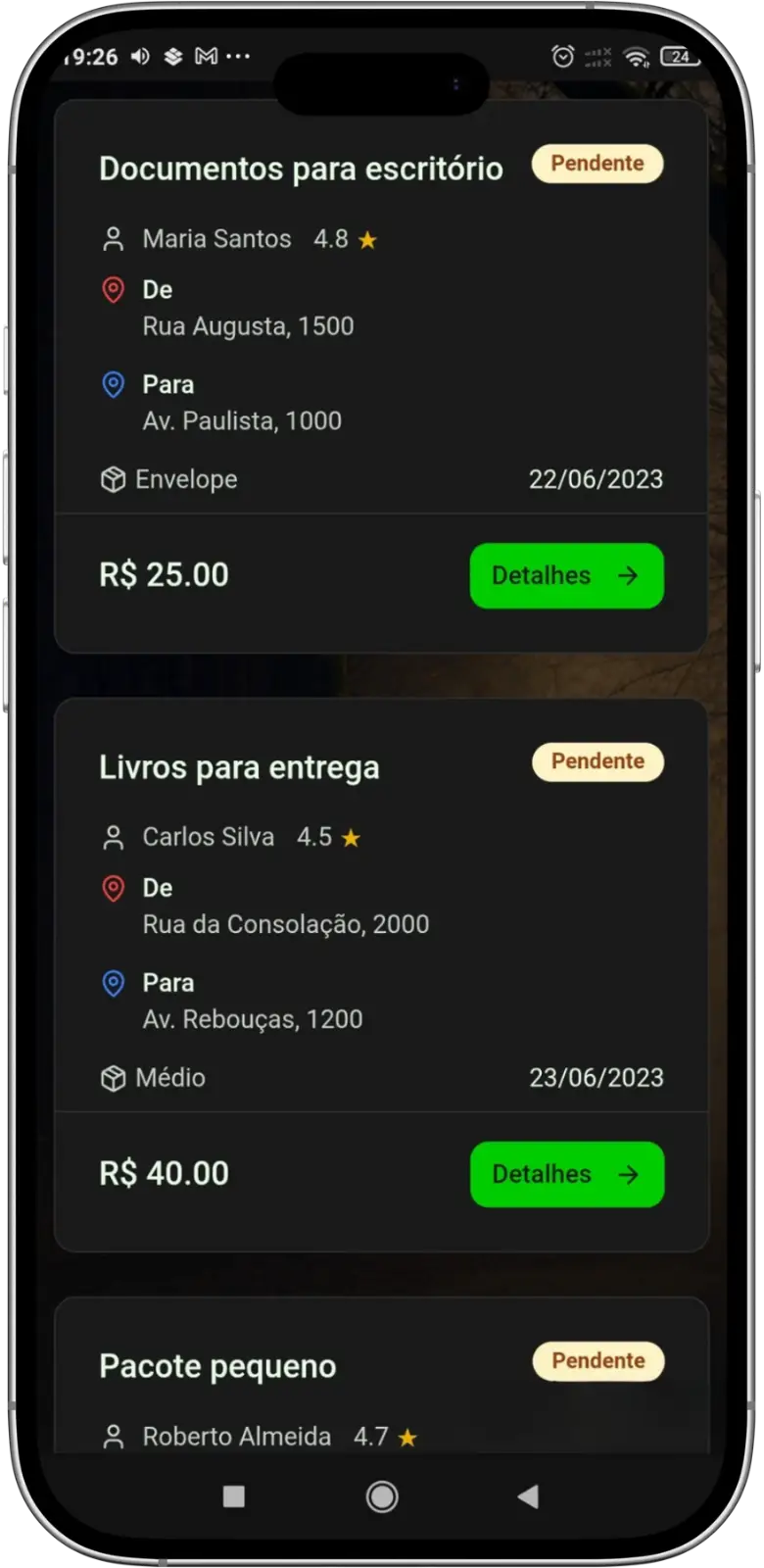 Após o aceite, apenas pegue o item e complete a entrega. Seu pagamento é liberado em sua conta com segurança.